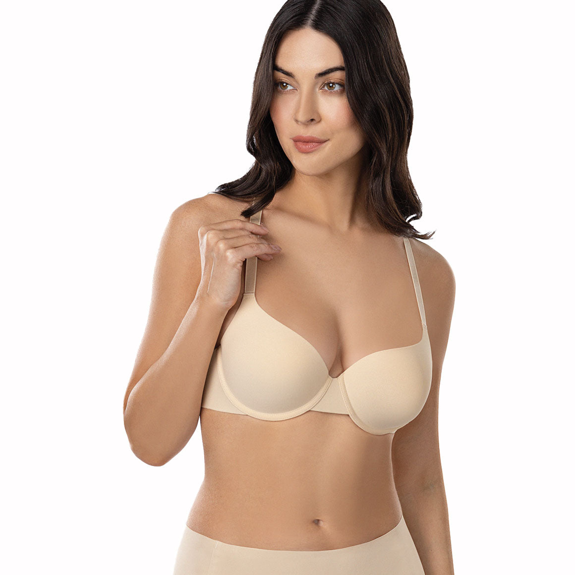 Brasier con aros y copas prehormadas con doble realce (extra push up). banda media sin costuras. tirantes regulables que se pueden cruzar en x en la espalda. broche de tres ganchos y tres niveles de ajuste. elaborado con microfibra interlok sin costuras en las orillas para un efecto invisible.