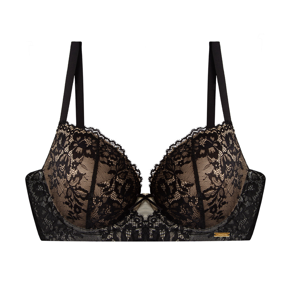 Brasier con aros, copas prehormadas sin realce (sin push up). banda media reforzada con doble tull y elástico en las orillas para un mejor ajuste. broche de cuatro ganchos y cuatro niveles de ajuste. tirantes regulables. elaborado de encaje con refuerzo de tricot.