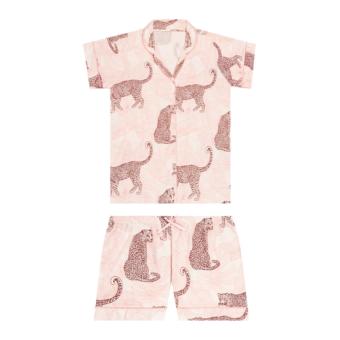 Pijama de dos piezas, elaborado con tela de dacrón suave. blusa con mangas detalle de cinta decorativa en ruedo y en el contorno del cuello y cierre de botones enfrente. pantalón corto (short) con detalle de cinta decorativa en ruedo y cintura elástica para un mejor ajuste.