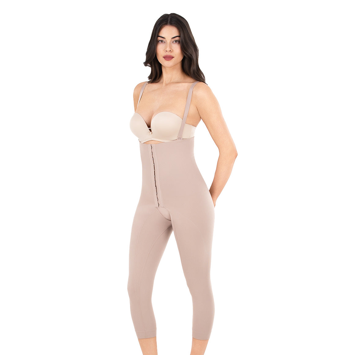 Faja para abdomen y piernas con máxima compresión. cuenta con tejido de doble capa, tirantes ajustables y removibles, una amplia apertura higiónica para facilitar el uso del baño y broches forrados que no entran en contacto con la piel. esta elaborado con tratamiento hidr�filo, que mejora la transpirabilidad de la piel. el producto tiene efecto memoria y una tecnologña que evita que el tejido se deforme. la faja no contiene costuras, lo que proporciona mayor comodidad postquirérgica sin dejar marcas en el cuerpo.