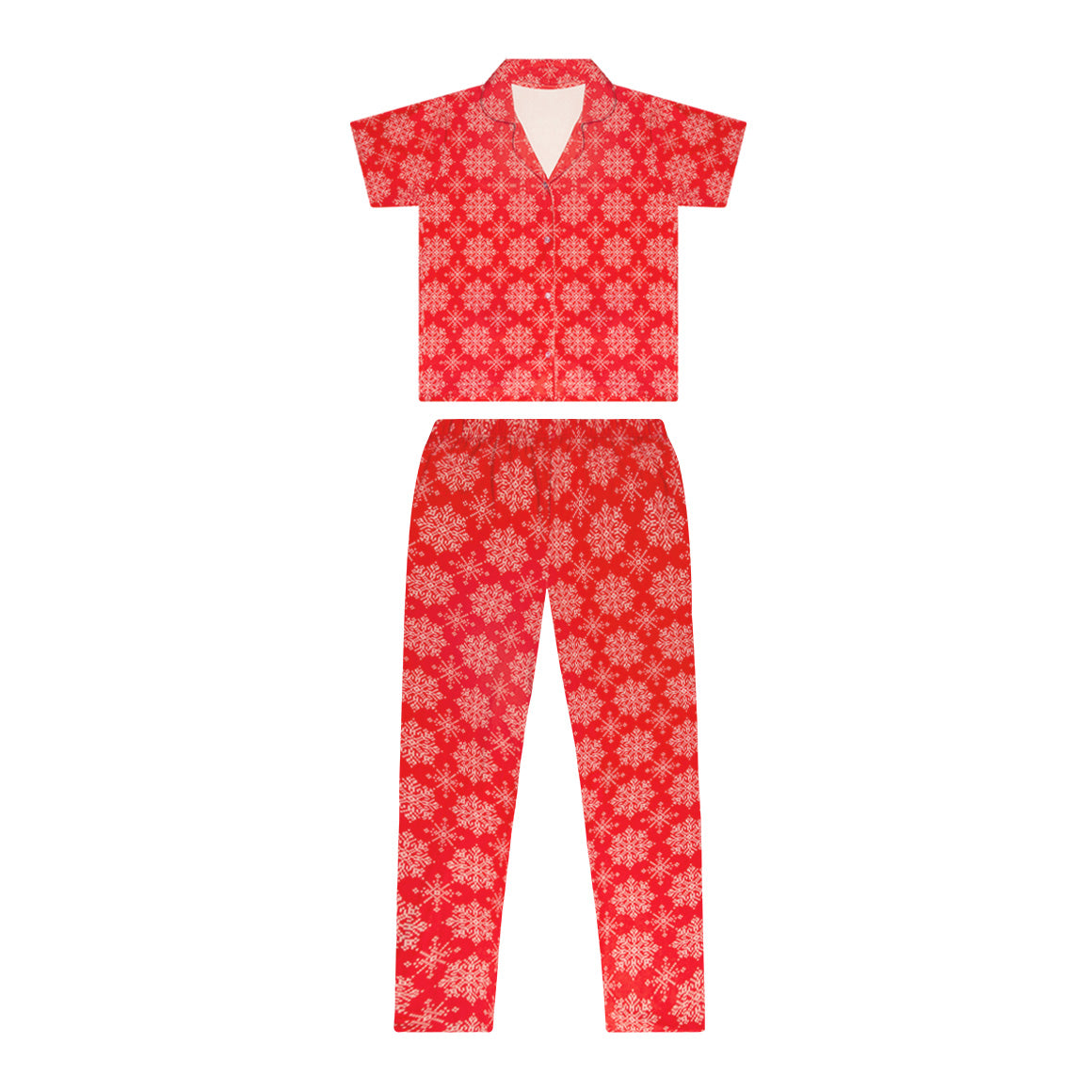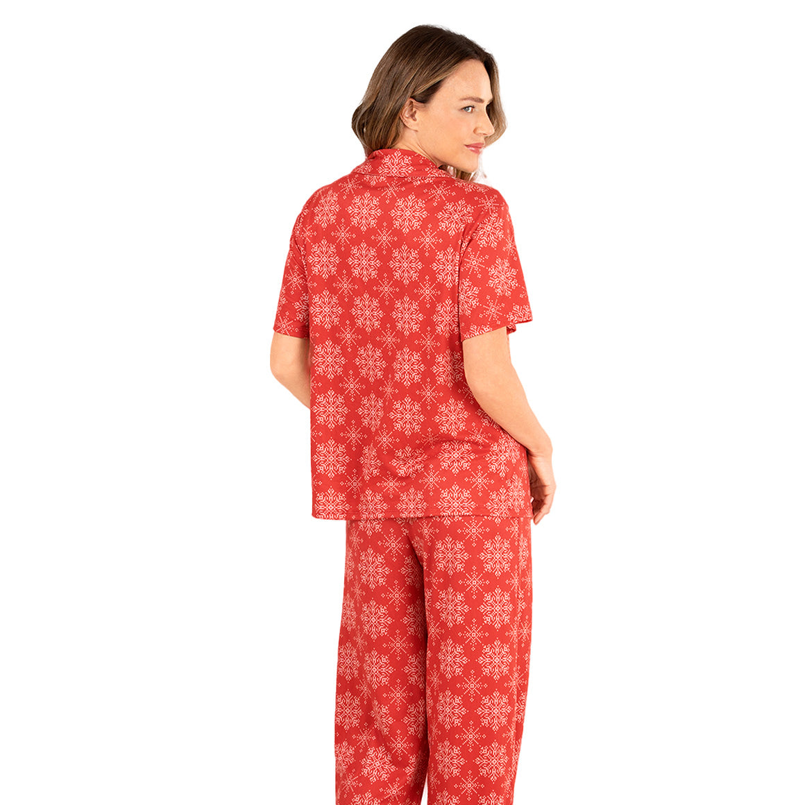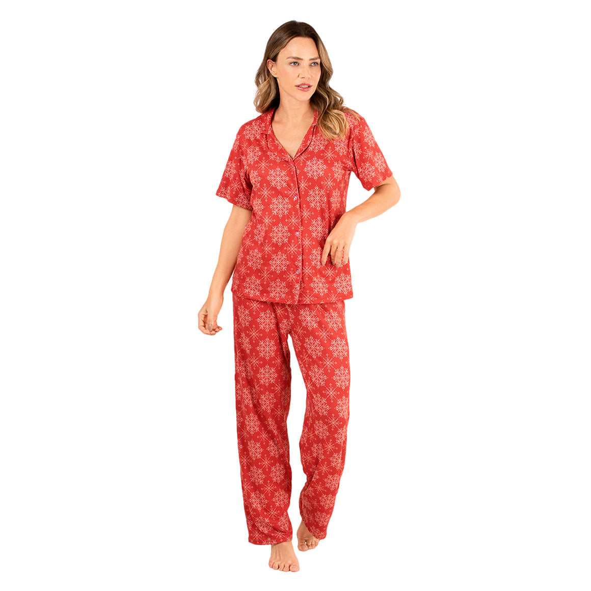 Pijama de dos piezas, elaborado con tela de poliéster suave y ligera. blusa con mangas y cierre de botones enfrente. pantalón largo con cintura elástica para un mejor ajuste.