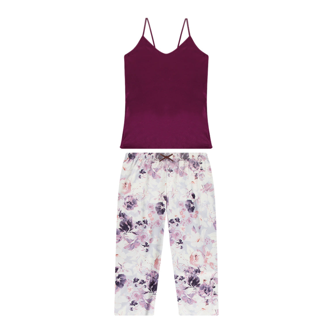 Pijama de dos piezas, elaborado de tela satín. la blusa tipo a cuenta con tirantes ajustables para un calce perfecto. el pantalón largo incluye cintura elástica que se adapta cómodamente al cuerpo, ofreciendo estilo y confort durante toda la noche.
