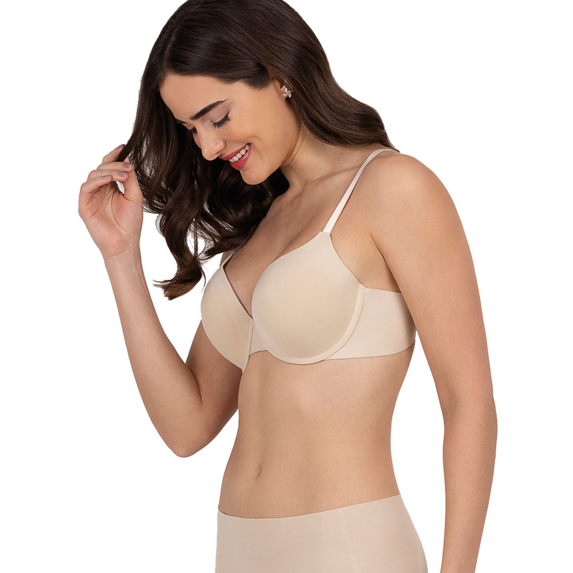 Brasier con aros y copas prehormadas con realce leve (con push up leve). banda angosta. broche de tres ganchos y tres niveles de ajuste. tirantes regulables. elaborado con microfibra interlok sin costuras en las orillas para un efecto invisible.