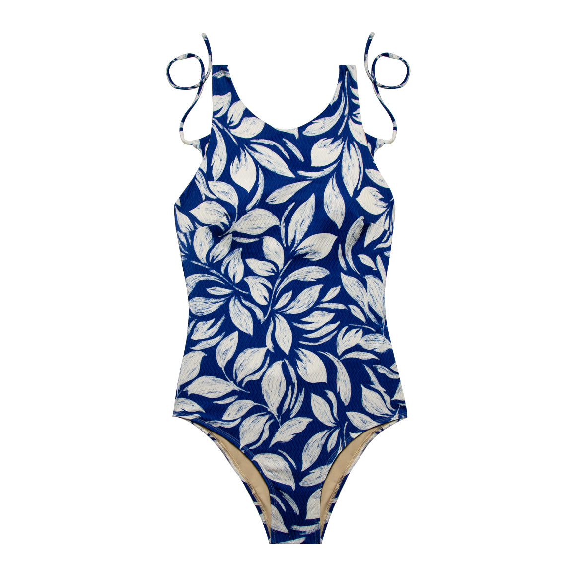 Traje de baño entero con cuello redondo, copas prehormadas sin realce y removibles. tirantes anchos y escote en la espalda en u con cordón de amarre en la parte superior. cobertura media de la parte posterior del panty. elaborado de microfibra con textura, elástico en los contornos para un mejor ajuste y forro de poliéster.