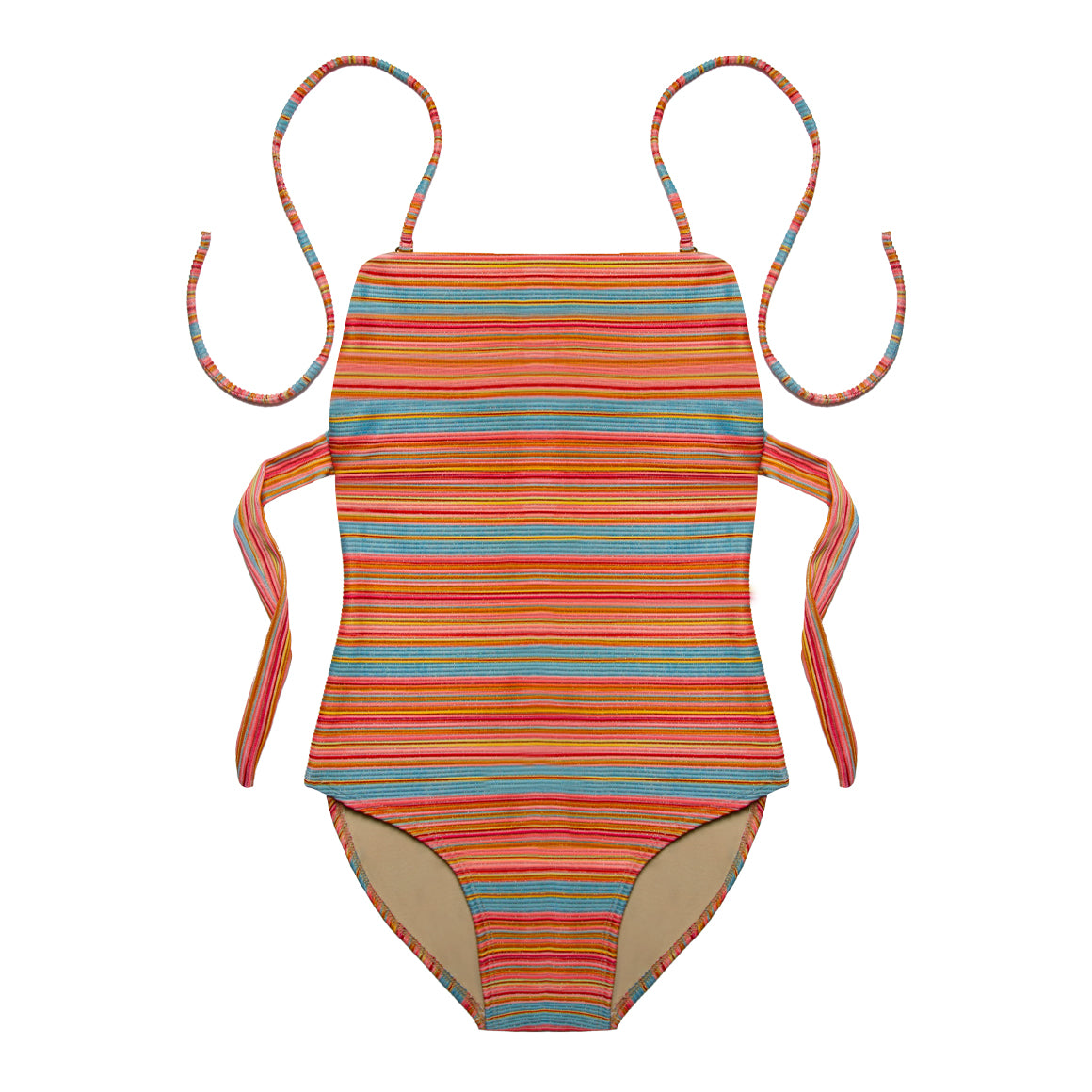 Traje de baño entero para niña con tirantes tipo halter. cobertura completa de la parte posterior del panty. elaborado de microfibra con textura, forro de poliéster y elástico escondido en los contornos para un mejor ajuste.