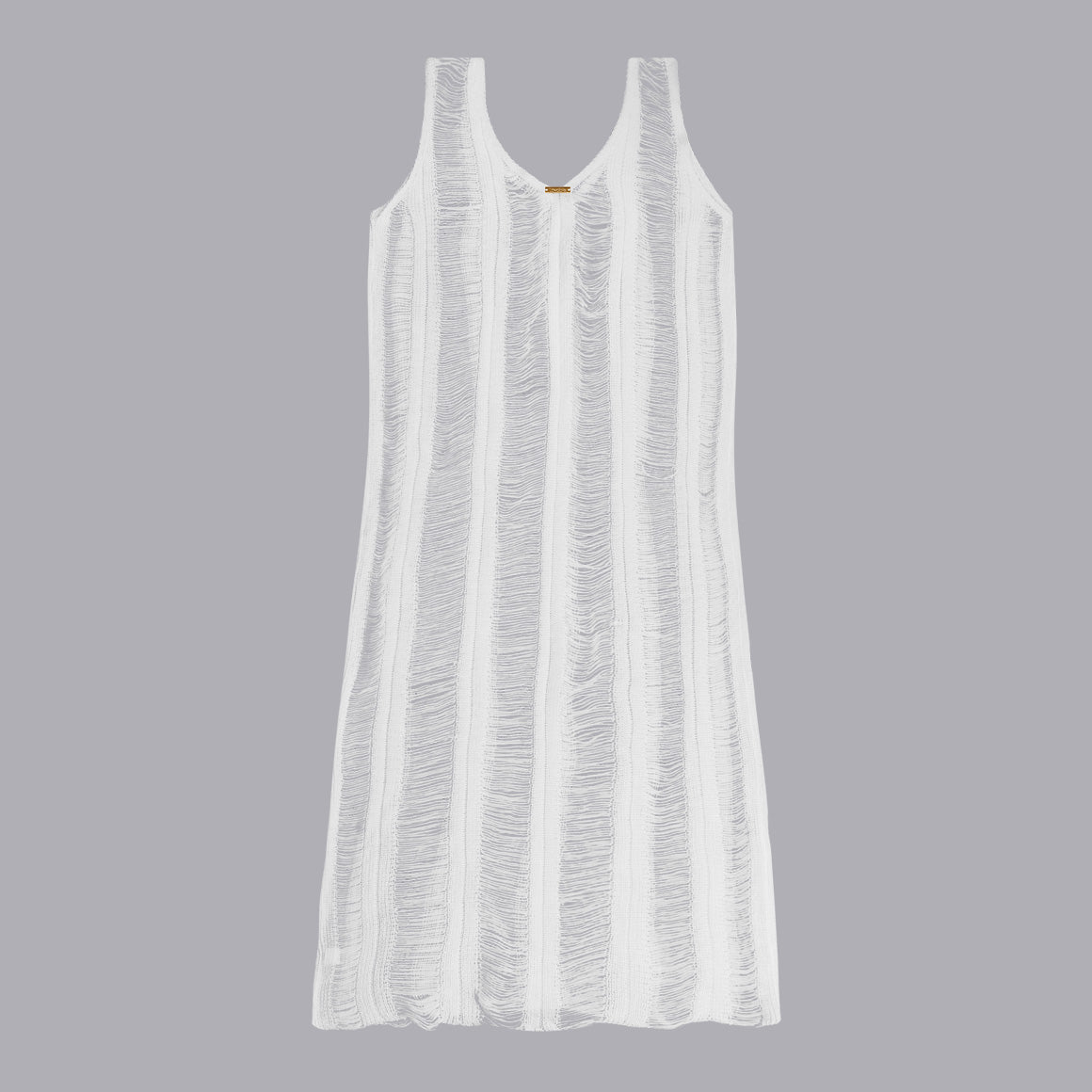 Salida de baño tipo tínica larga, de silueta suelta y fluida que brinda movimiento y comodidad en cada paso. diseñada con cuello v y delicadas tiras holgadas ofrece un estilo relajado y sofisticado, perfecto para tus dñas junto al mar o la piscina. elaborada de crochet combinando textura, ligereza y un toque artesanal, aportando elegancia sin esfuerzo a tu look veraniego.