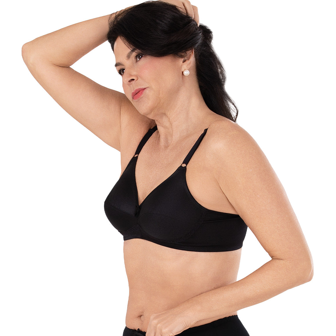Brasier sin aros, copas sin realce. banda angosta, con elástico para un mejor ajuste, broche de dos ganchos y tres niveles de ajuste, con tirantes anchos regulables. elaborado de spandex en la banda, y copas con tela simplex sin elasticidad con detalles de encaje en su contorno inferior.