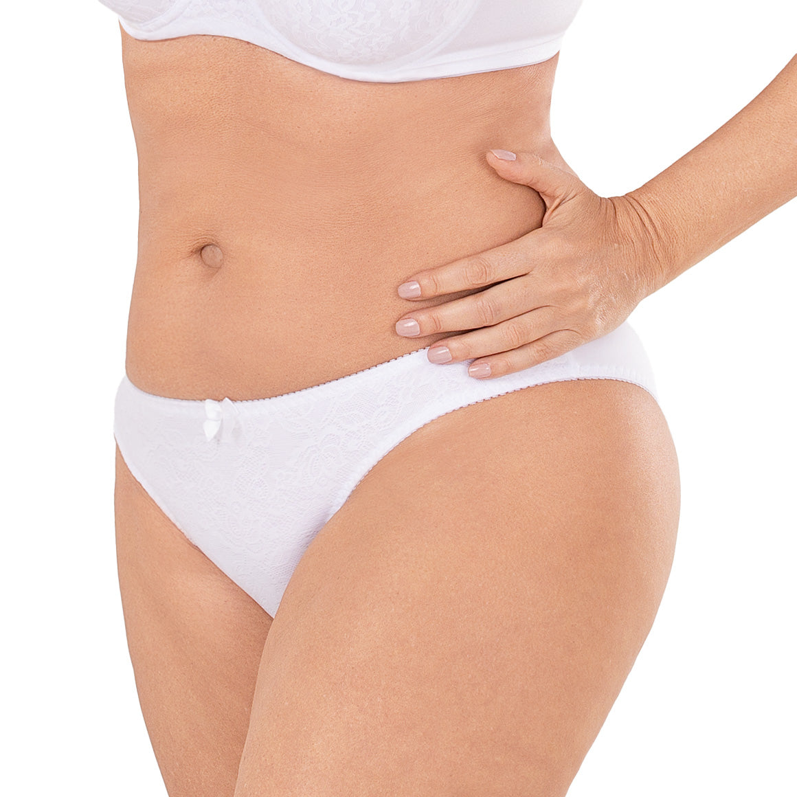 Panty con talle medio y cobertura media. elaborado de spandex en la parte posterior y encaje con refuerzo de algodón en la parte frontal. de pierna alta con elástico y en cintura para un mejor ajuste. puente inferior de algodón para mayor frescura.
