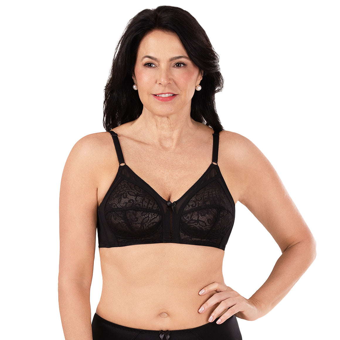 Brasier sin aros, copas sin realce con refuerzo de espuma en la parte inferior interna. banda media con elástico para un mejor ajuste y varillas laterales. broche de dos ganchos y tres niveles de ajuste, con tirantes regulables. elaborado de powernet y copas de encaje