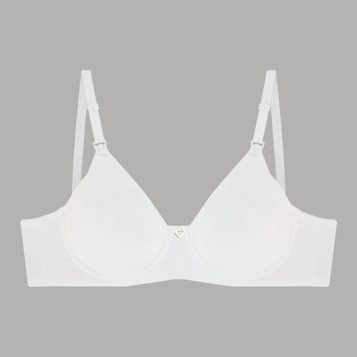 Brasier maternal con aros, copas sin realce. banda media, con elástico. broche de dos ganchos y tres niveles de ajuste, con tirantes regulables. elaborado de algodón elastano. con broches en la parte superior de cada copa, que permite dejar el busto libre para la lactancia sin dejarlo totalmente al descubierto por sus contornos laterales internos.