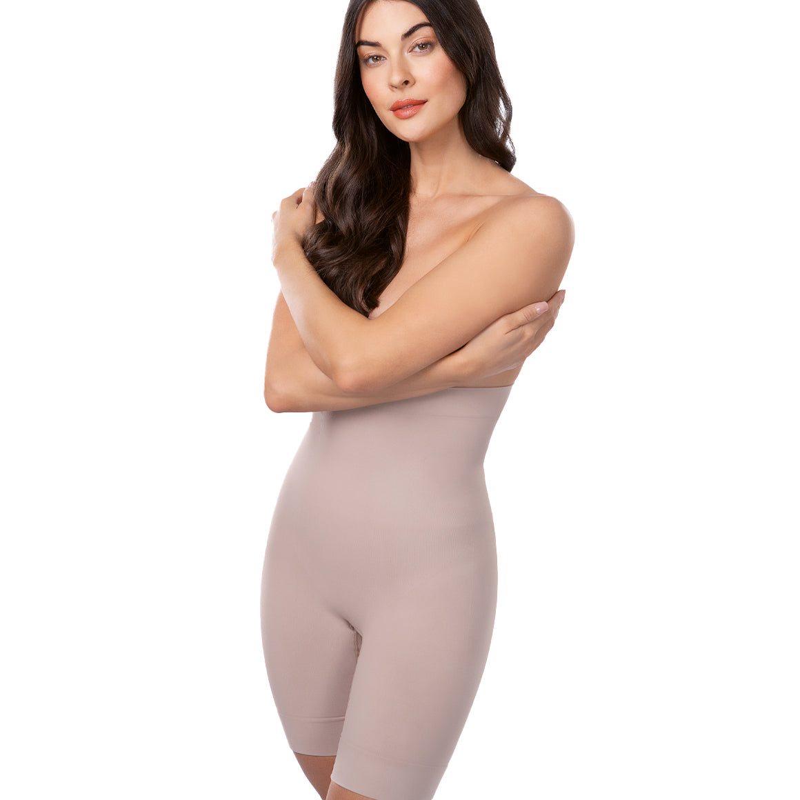 Faja con control fuerte, sin costuras en los laterales, con talle abajo del busto y cobertura hasta media pierna. elaborado de microfibra, cuenta con una abertura inferior para mayor comodidad. con silicon antideslizante en la banda superior.