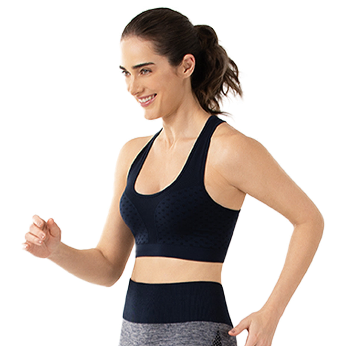 Top deportivo sin costuras laterales. sin aros. tirantes anchos, que dejan los hombros al descubierto en la parte posterior. elaborado de microfibra reforzado con doble tela. por su suave sujeción del busto permite mayor libertad de movimientos.