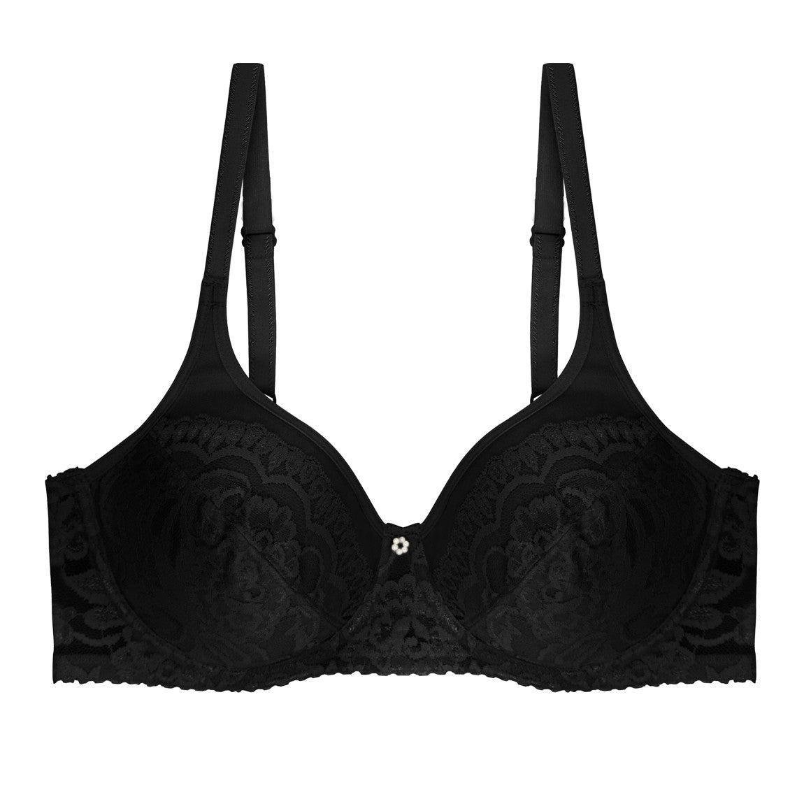 Brasier con aros, copas sin realce. banda media con elástico para un mejor ajuste, broche de dos ganchos y tres niveles de ajuste, con tirantes anchos regulables. elaborado de spandex en la banda posterior, encaje en la parte frontal y en copas.