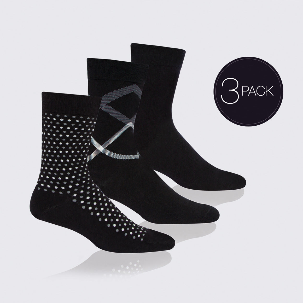 Calcetín con cobertura hasta media pantorrilla. elaborado con algodón, poliéster y elastano. absorbe la transpiración, manteniendo el pie seco y cómodo. *empaque de tres pares con diferentes diseños.