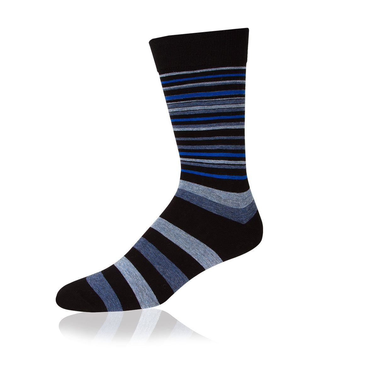 Calcetín con cobertura hasta media pantorrilla y diseños en líneas horizontales. elaborado con algodón, poliéster y elastano. absorbe la transpiración, manteniendo el pie seco y cómodo.